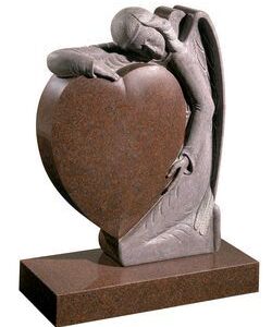 Imperial Red Granite HS 33″ x 26″ x 6″ Base 4″ x 30″ x 12″ A beautifully carved angel holds a heart.